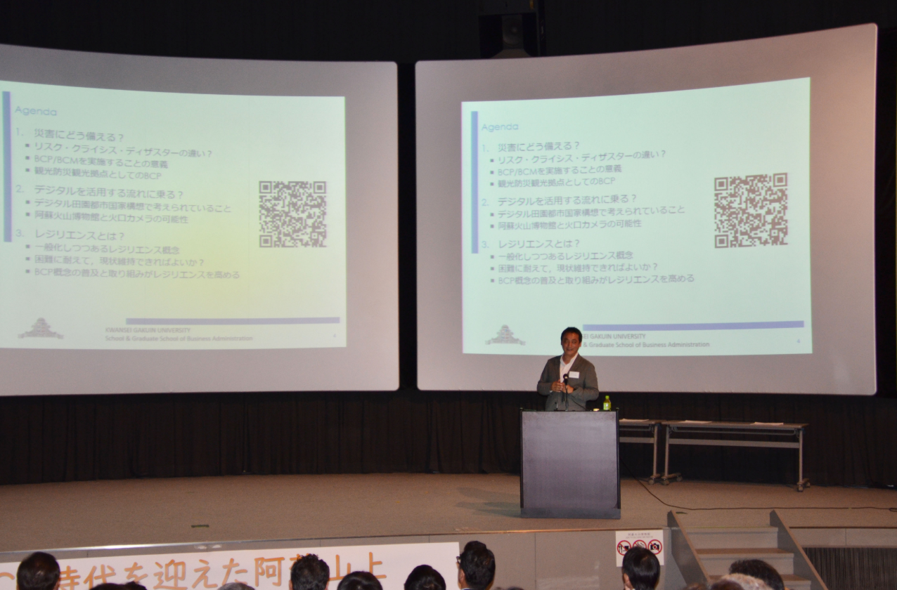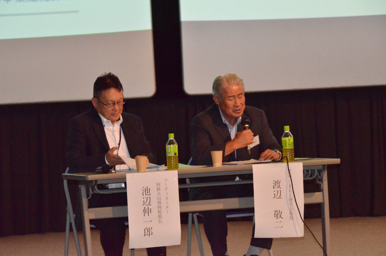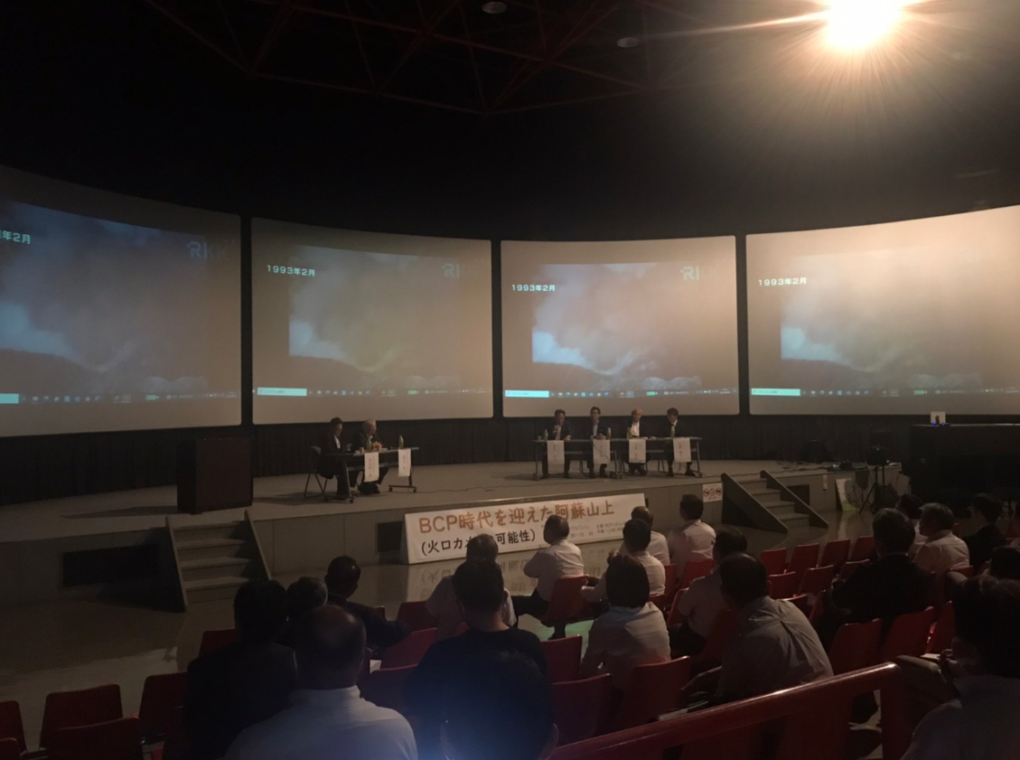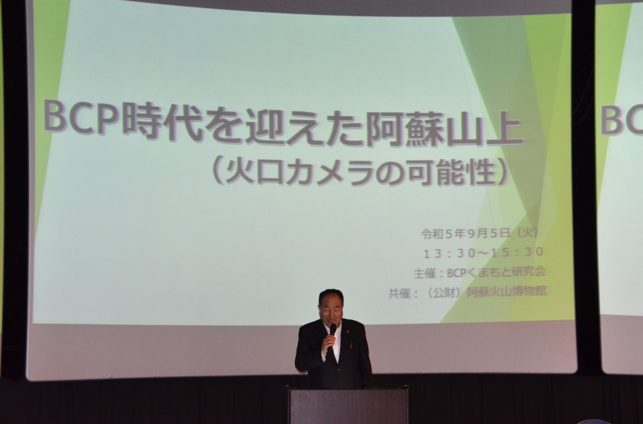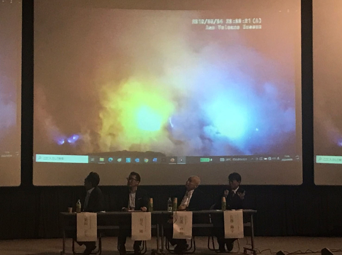 阿蘇火山博物館が所有する「火口カメラシステム」の今後のより幅広い活用と維持管理システム構築のため、「阿蘇山 観光防災・教育協議会(仮称)」の設立に向け、BCP(事業継続)や阿蘇の防災に関する基調講演、協議会設立に向けたパネルディスカッションなどが行われました。