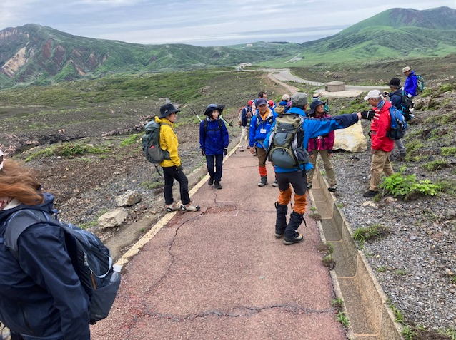 先日、高岳コースを想定した下見兼研修を博物館スタッフ、ジオガイド等、約20名で行いました。
