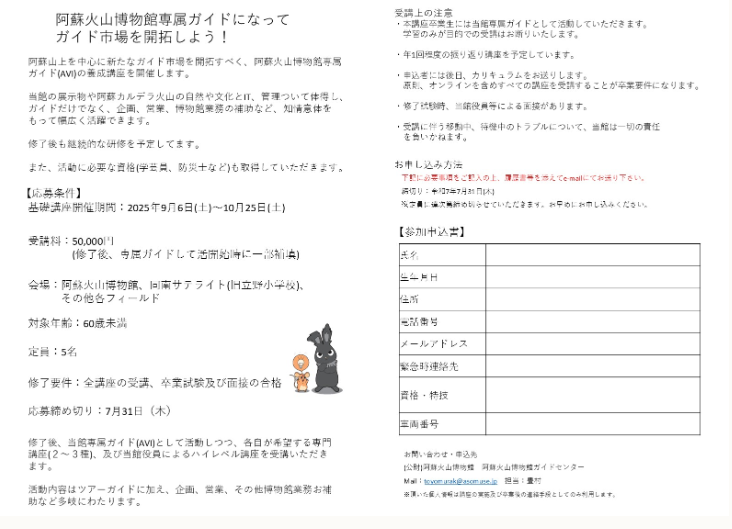阿蘇火山博物館専属ガイドを要請する講座を開催します。