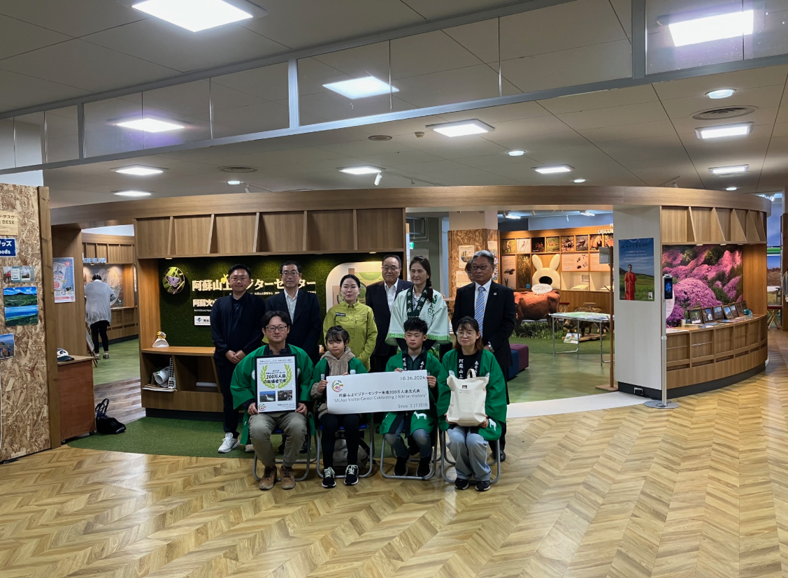 200万人目の来場者は県外からお越しの阿蘇大好きファミリーでした。おめでとうございます!