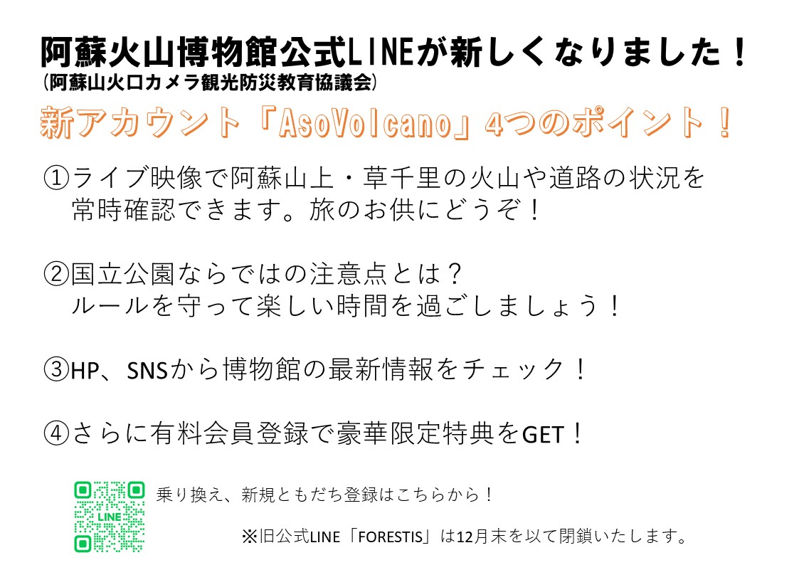 阿蘇火山博物館 新公式LINE「AsoVolcano」について